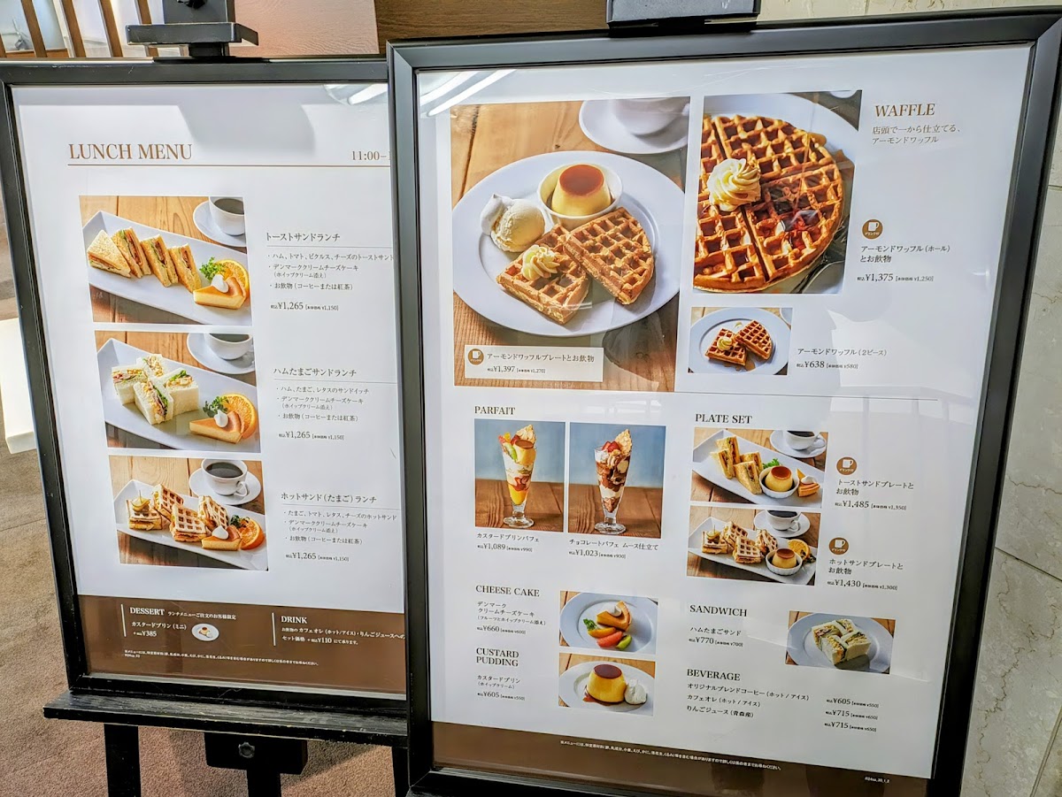 Pair your treats with a choice of original blend coffee or fragrant tea, making for an enjoyable afternoon respite. The cafe also boasts a variety of sweets like classic cake sets, parfaits, and custards, catering to all tastes. For lighter fare, their sandwich sets are a hit.